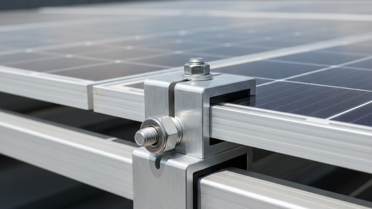 O clemă de mijloc prindere panouri solare fotovoltaice nu are doar rolul de a fixa două panouri pe șină. Funcția ei este să aplice o presiune constantă, uniformă, pe rama panourilor, fără să o deformeze și fără să creeze puncte de stres. Dacă presiunea este prea mică, ansamblul are joc. Dacă este prea mare, șurubul intră prea mult în rame și poate afecta comportamentul în timp al prinderii.